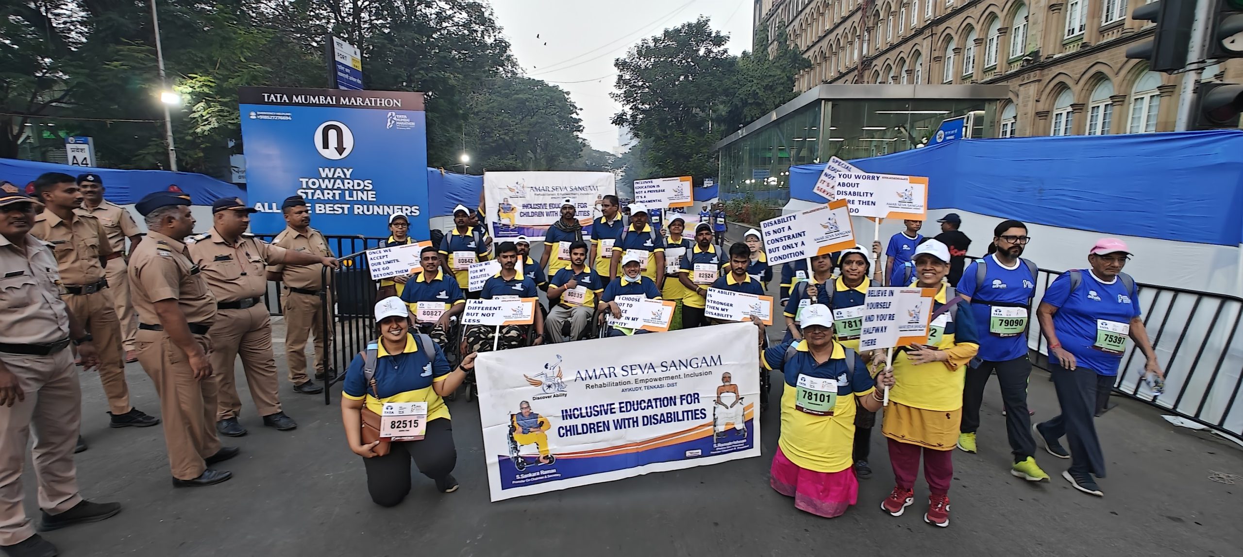 Amar Seva Sangam proudly participated in the Tata Mumbai Marathon 2026 with great enthusiasm and purpose. Our team, including persons with disabilities, staff, and volunteers, came together to represent the spirit of inclusion and determination. The event provided a meaningful platform to spread awareness about disability and the importance of equal opportunities in society. Participants, including wheelchair users, showcased incredible strength, confidence, and resilience, inspiring everyone around them.